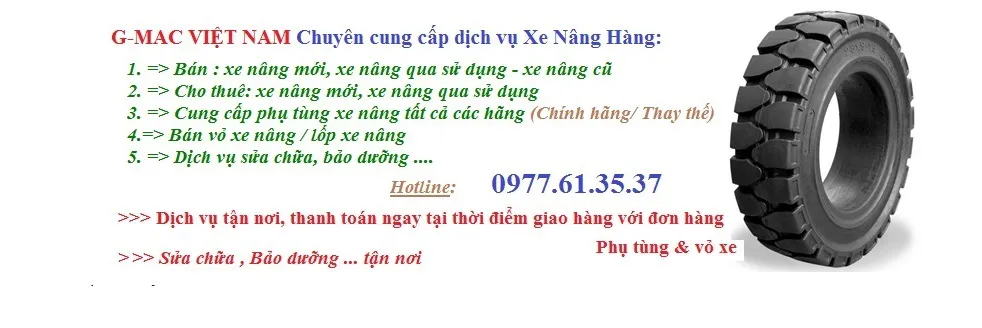 G-MAC Việt Nam được giới thiệu là đơn vị cung cấp vỏ xe nâng chuyên nghiệp trên thị trường, với sản phẩm đa dạng dành cho nhiều dòng xe nâng.
